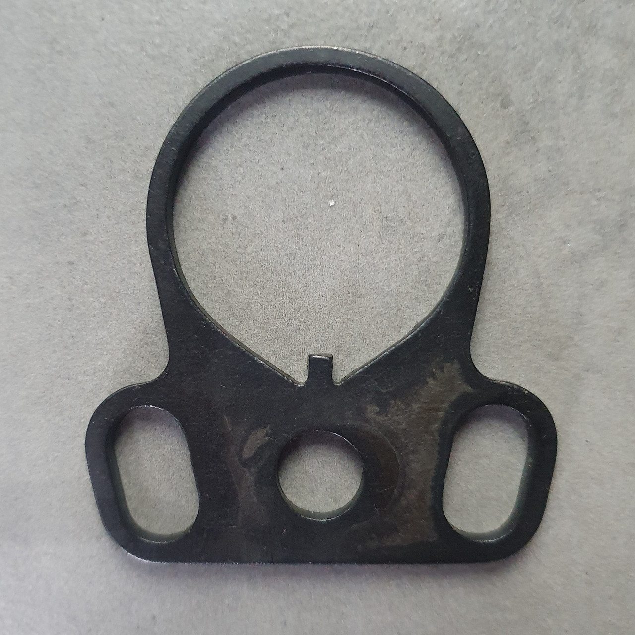 Универсальная адаптерная пластина в виде кольца для трубок прикладов карабинов типа AR15, к которой с двух сторон можно прикрепить антабку одноточечного или трёхточечного ремня.