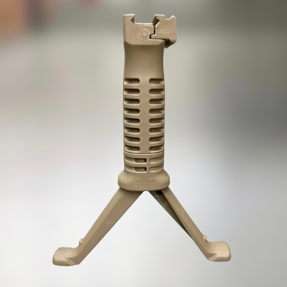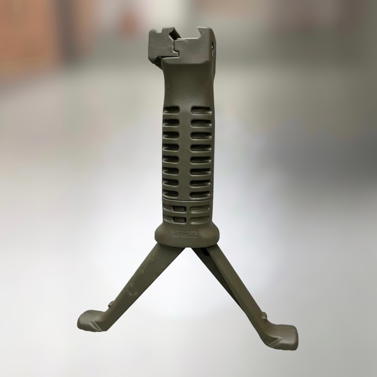 Конструкция модели ориентирована на уверенный вертикальный хват, быстрый доступ к передней части оружия и комфортную работу в перчатках. Основа выполнена из армированного полимера, что помогает сохранить прочность при умеренном весе. Прорезиненные или текстурированные зоны хвата дополнительно повышают контроль без излишнего усилия кисти. Складной механизм помогает адаптировать конфигурацию под транспортировку и разные сценарии эксплуатации.