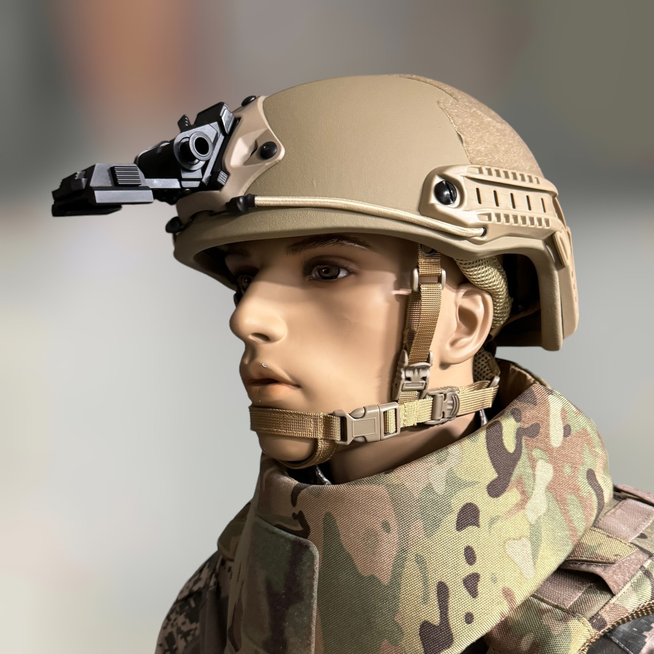 Кріплення на шолом у комплекті: для зручного hands-free використання, забезпечує стабільність фіксації та комфорт у носінні завдяки відкидній шарнірній конструкції, яка також передбачає .