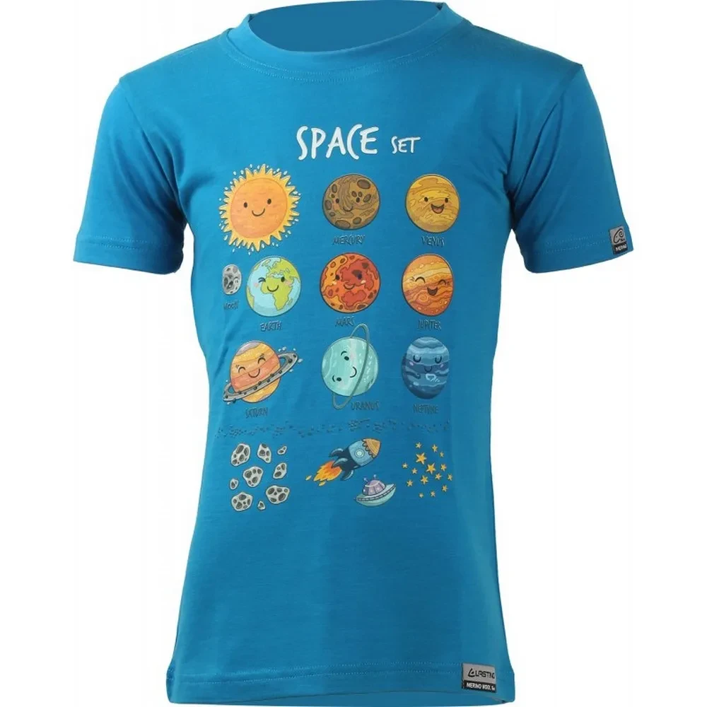 Дитяча вовняна футболка на короткий рукав. Матеріал не “кусає”, приємний на дотик. Забезпечує відмінну терморегуляцію. Підходить ідеально як перший шар, під флісову кофту, в прохолодну погоду, або як єдиний шар одягу в теплу погоду. Випускається в декількох варіантах кольорів з веселим принтом.