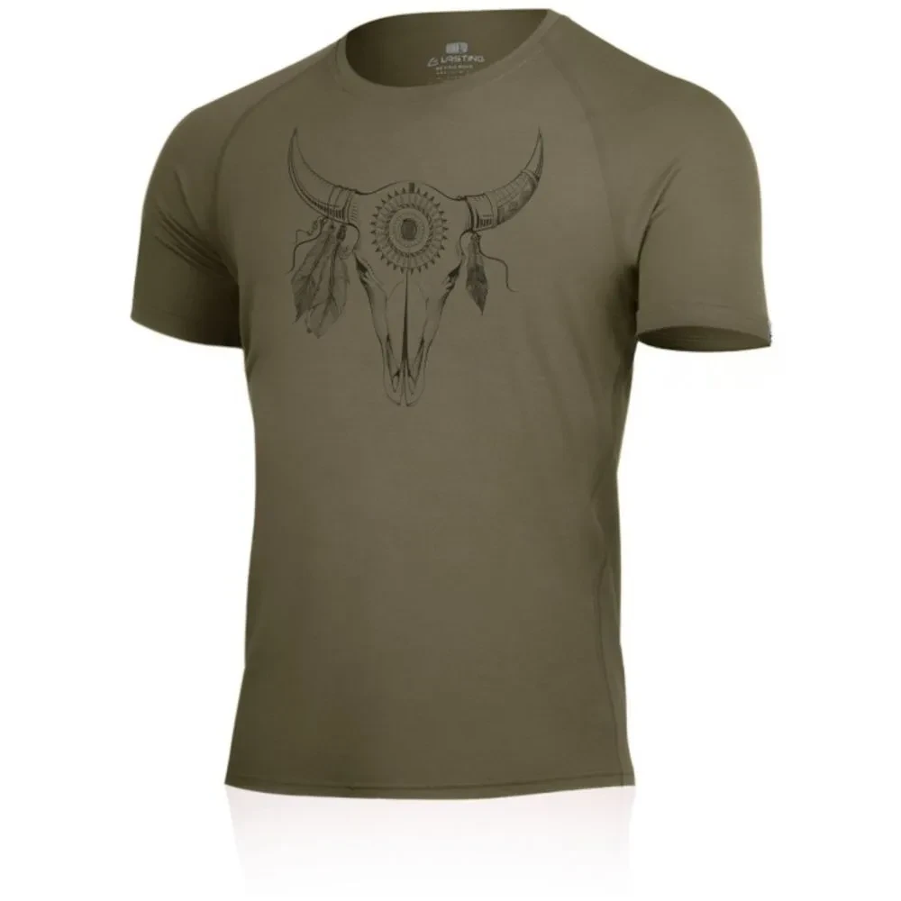 Футболка виготовлена з мериносової вовни, що походить від спеціально виведених овець, які живуть у холодних і вологих регіонах. У цій суворій природі вівці виробляють натуральні волокна, яких людина не може. Однак вони, на щастя, можуть їх обробити. Ці волокна набагато тонші, ніж традиційна вовна. Мериносова шерсть шовковисто-м'яка, має вищу теплоізоляційну здатність і краще пропускає повітря. Білизна з довгих волокон дуже тонкої мериносової вовни забезпечує користувачеві комфорт і м'якість. Футболка має яскравий принт, добре підходить для повсякденного використання, подорожей тощо.